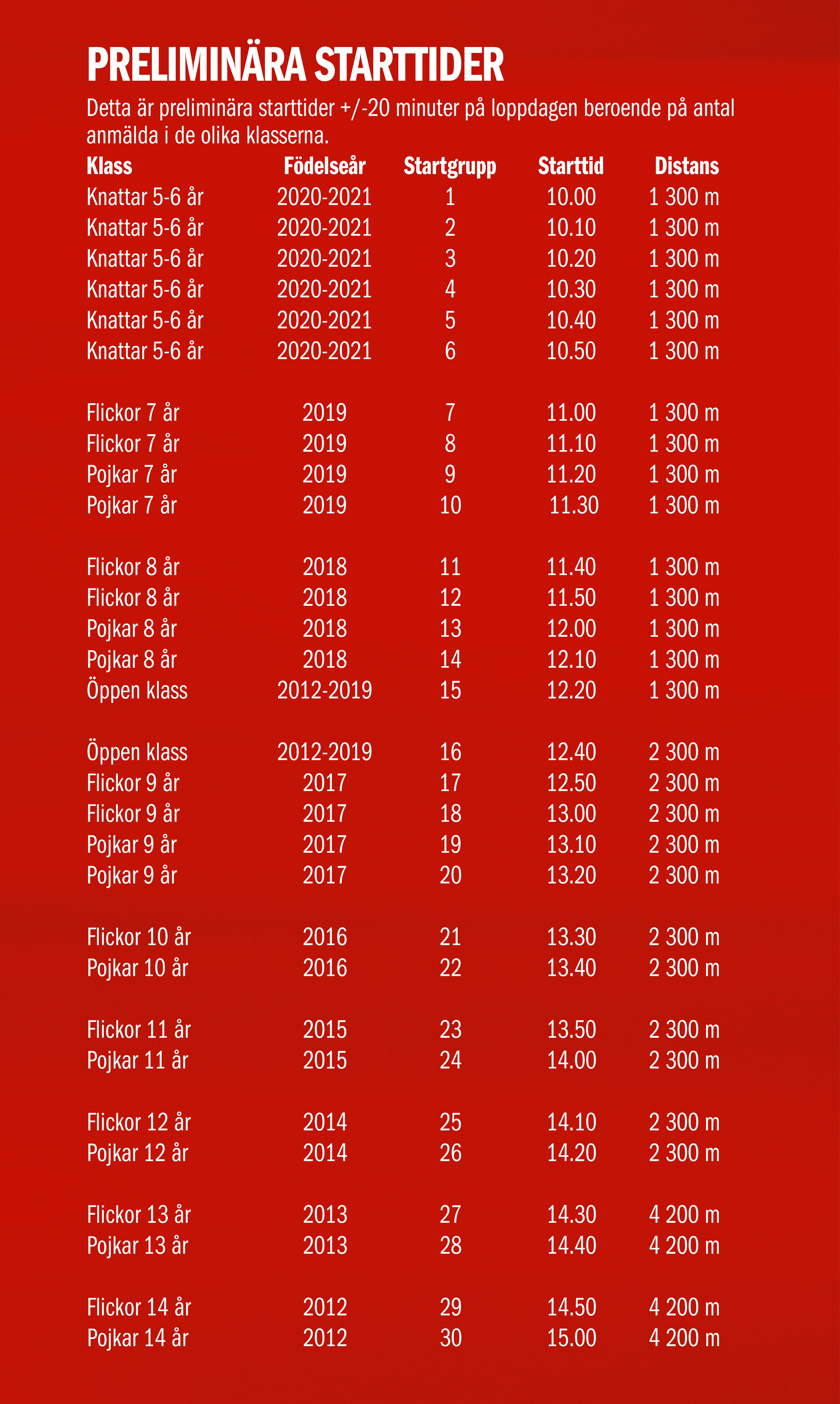 En rolig nyhet för i år är att distansen för åldersklasserna 13 och 14 år är 4,200 meter.